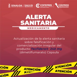 ALERTA SANITARIA MEDICAMENTO Actualización de la alerta sanitaria sobre falsificación y comercialización irregular del producto Tecfidera® 240 mg (dimetilfumarato) Cápsula