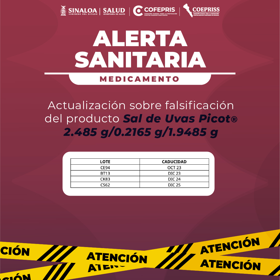 ALERTA SANITARIA MEDICAMENTO Actualización sobre falsificación del producto Sal de Uvas Picot® 2.485 g/0.2165 g/1.9485 g