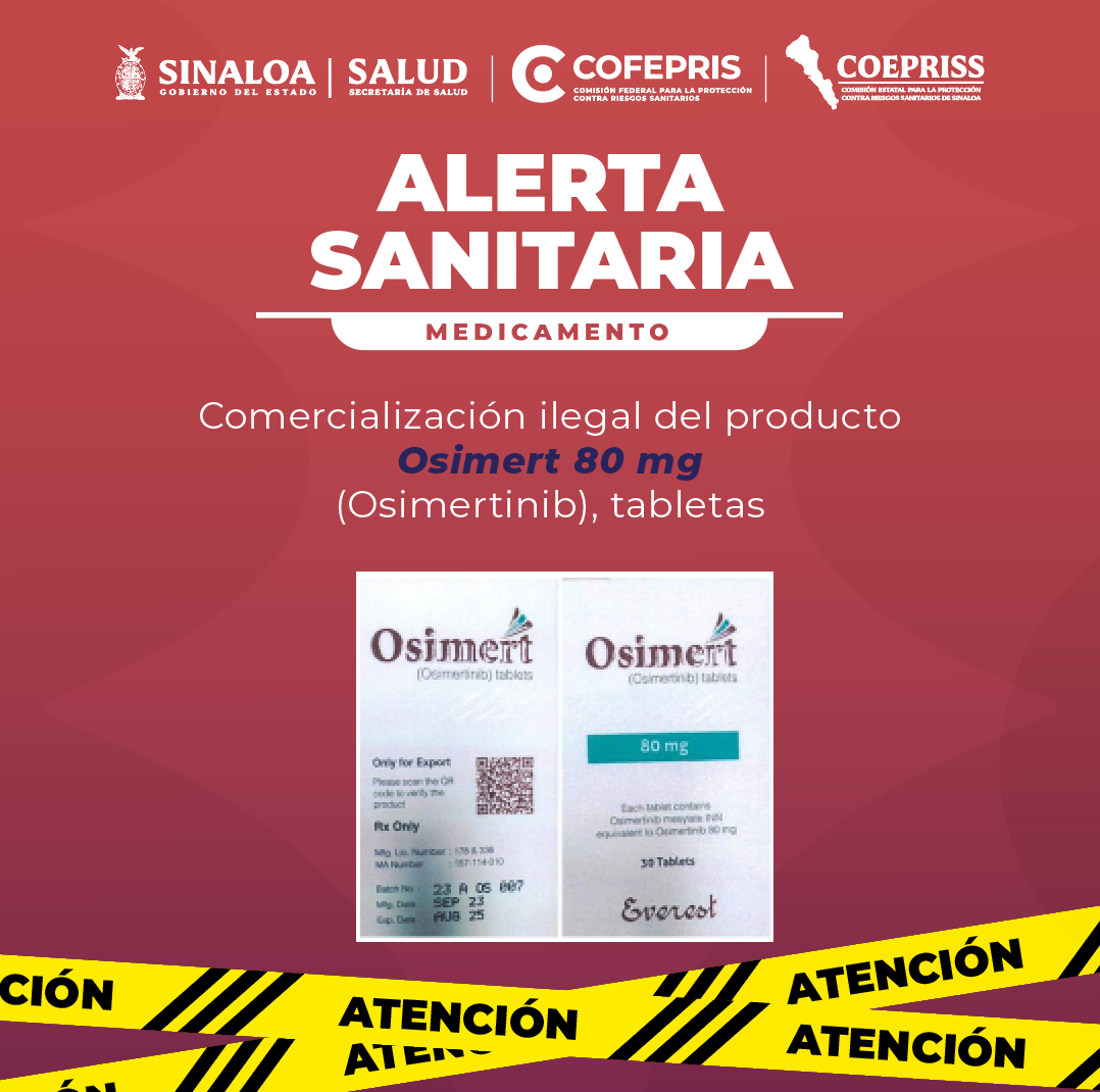 ALERTA SANITARIA MEDICAMENTO Comercialización ilegal del producto Osimert 80 mg(Osimertinib), tabletasPor Editorial / febrero 28, 2025 ALERTA SANITARIA MEDICAMENTO Comercialización ilegal del producto Osimert 80 mg(Osimertinib), tabletas
