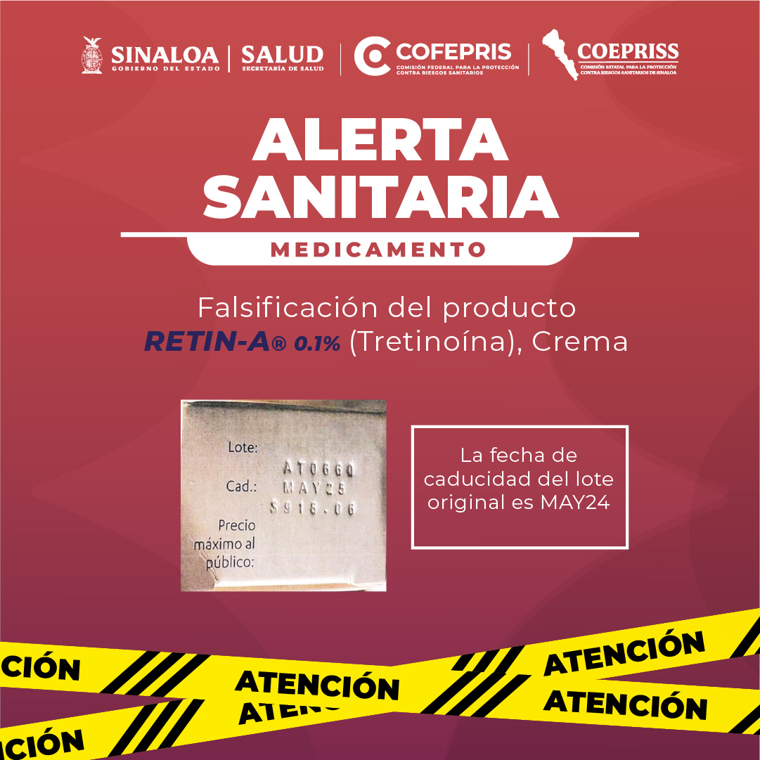 ALERTA SANITARIA MEDICAMENTO Falsificación del producto RETIN-A® 0.1% (Tretinoína), CremaPor Editorial / abril 25, 2025 ALERTA SANITARIA MEDICAMENTO Falsificación del producto RETIN-A® 0.1% (Tretinoína), Crema