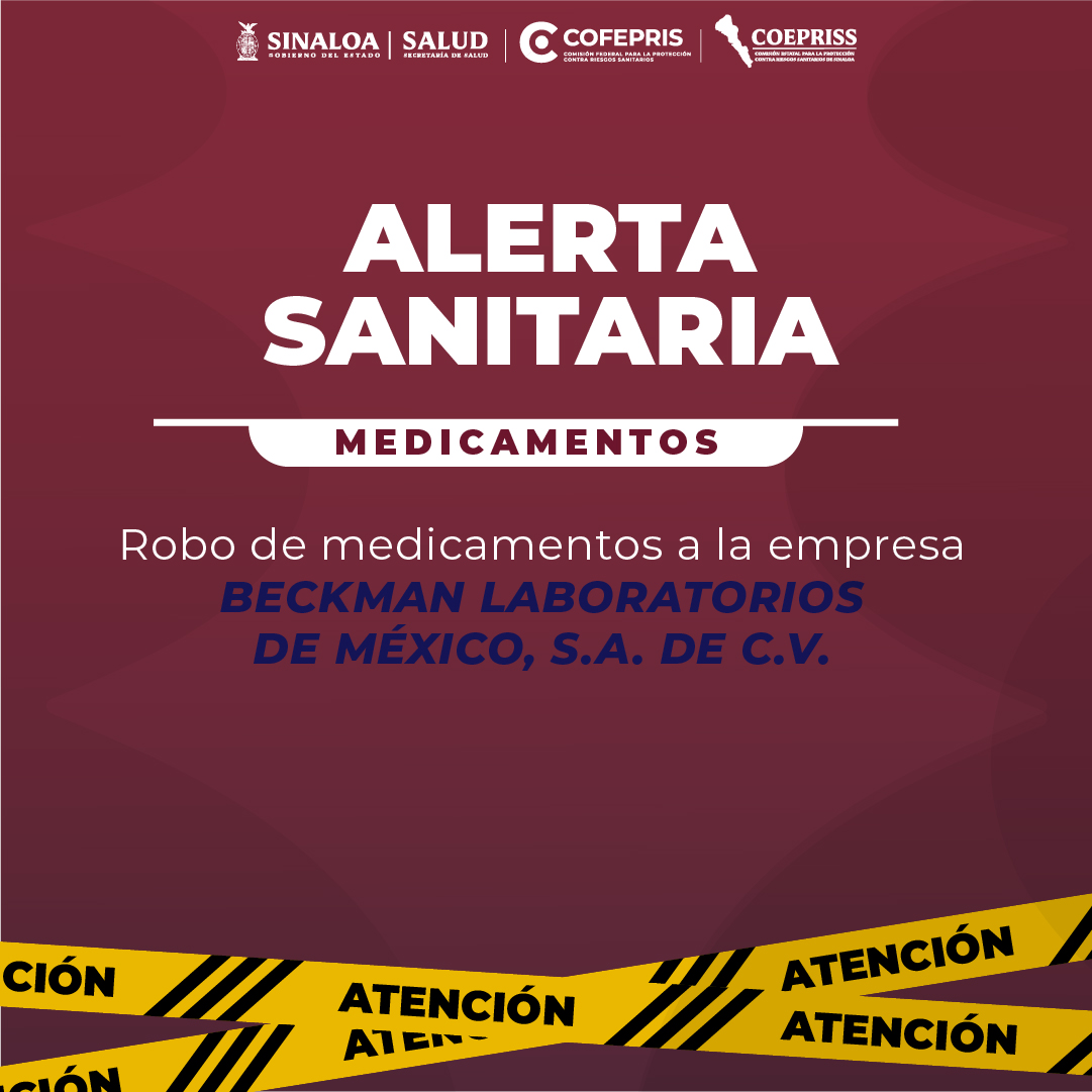 ALERTA SANITARIA MEDICAMENTOS Robo de medicamentos a la empresa BECKMAN LABORATORIOS DE MÉXICO, S.A. DE C.V.Por Editorial / agosto 19, 2025 ALERTA SANITARIA MEDICAMENTOS Robo de medicamentos a la empresa BECKMAN LABORATORIOS DE MÉXICO, S.A. DE C.V.