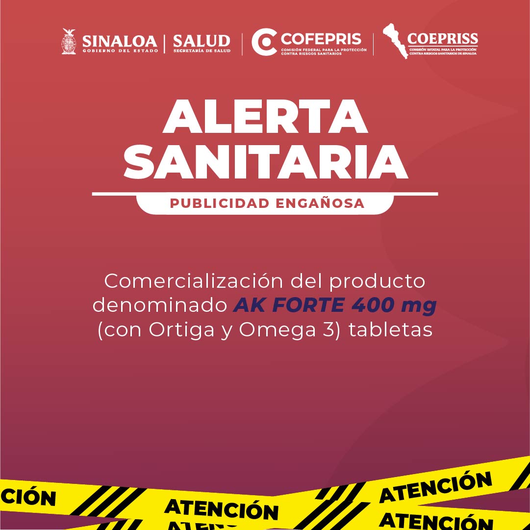 ALERTA SANITARIA PUBLICIDAD ENGAÑOSA Comercialización del producto denominado AK FORTE 400 mg (con Ortiga y Omega 3) tabletas