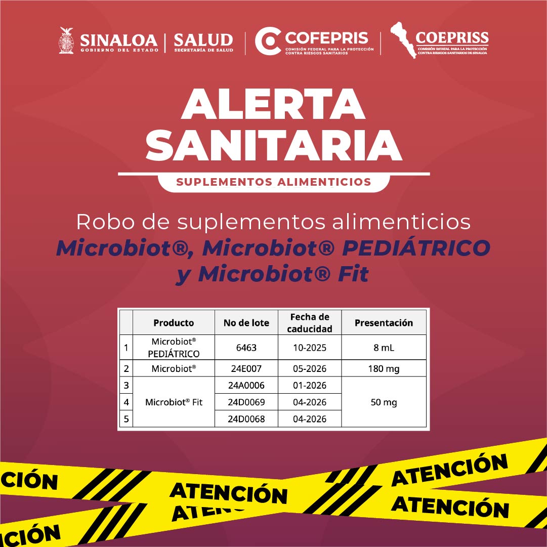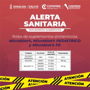 ALERTA SANITARIA SUPLEMENTOS ALIMENTICIOS Robo de suplementos alimenticios Microbiot®, Microbiot® PEDIÁTRICO y Microbiot® Fit