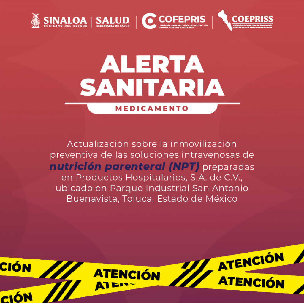 ALERTA SANITARIA MEDICAMENTO Actualización sobre la inmovilización preventiva de las soluciones intravenosas de nutrición parenteral (NPT) preparadas en Productos Hospitalarios,