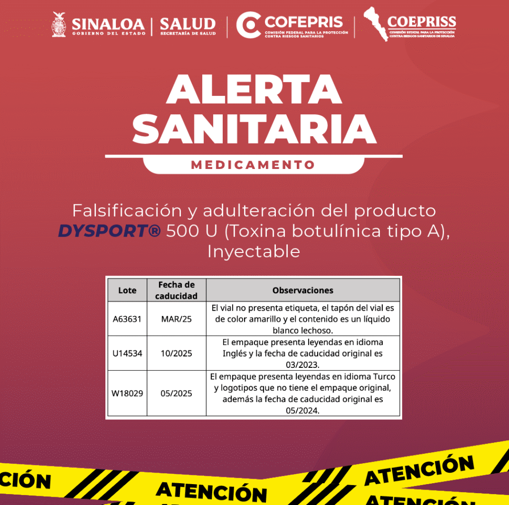 ALERTA SANITARIA MEDICAMENTO Falsificación y adulteración del producto DYSPORT® 500 U (Toxina botulínica tipo A),Inyectable
