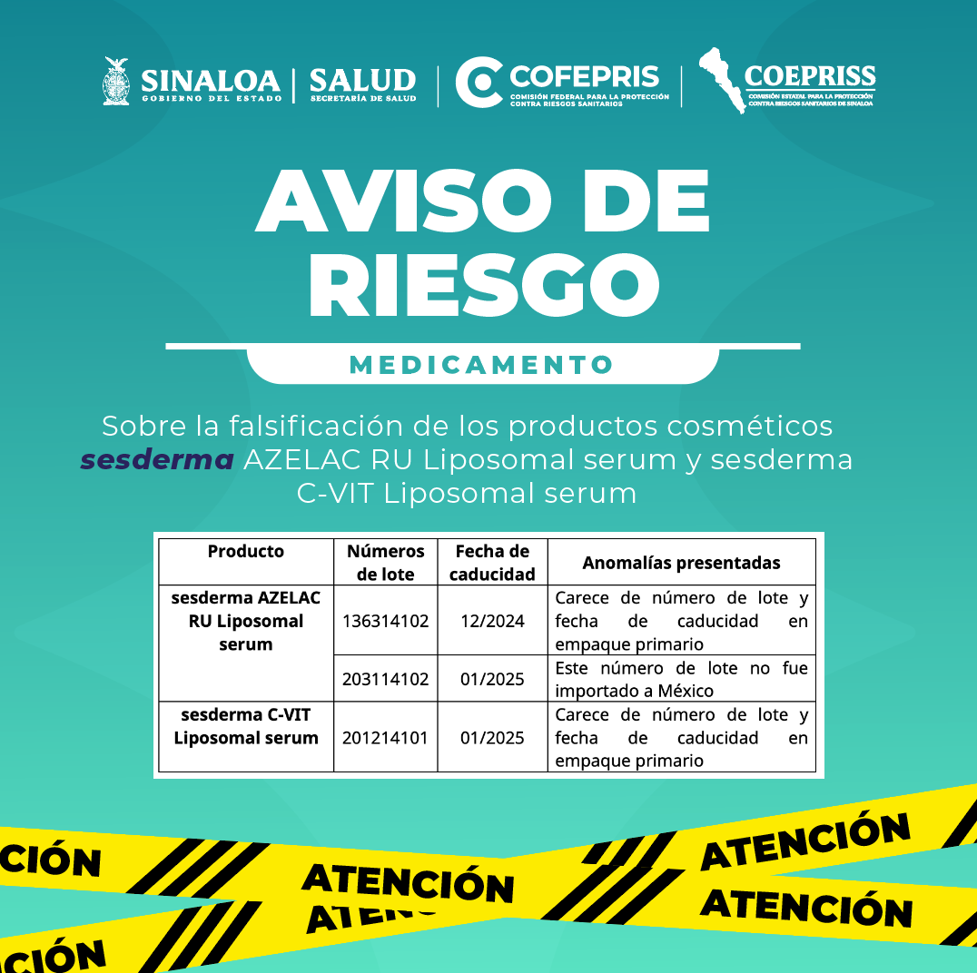 AVISO DE RIES GOMEDICAMENTO Sobre la falsificación de los productos cosméticos sesderma AZELAC RU Liposomal serum y sesdermaC-VIT Liposomal serum