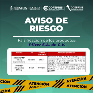AVISO DE RIESGO Falsificación de los productos Pfizer S.A. de C.V.Por contacto.bitxel@gmail.com / agosto 30, 2025 AVISO DE RIESGO Falsificación de los productos Pfizer S.A. de C.V.