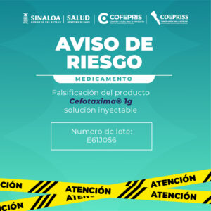 AVISO DE RIESGO MEDICAMENTO Falsificación del producto Cefotaxima® 1gsolución inyectablePor contacto.bitxel@gmail.com / abril 15, 2025 AVISO DE RIESGO MEDICAMENTO Falsificación del producto Cefotaxima® 1gsolución inyectable
