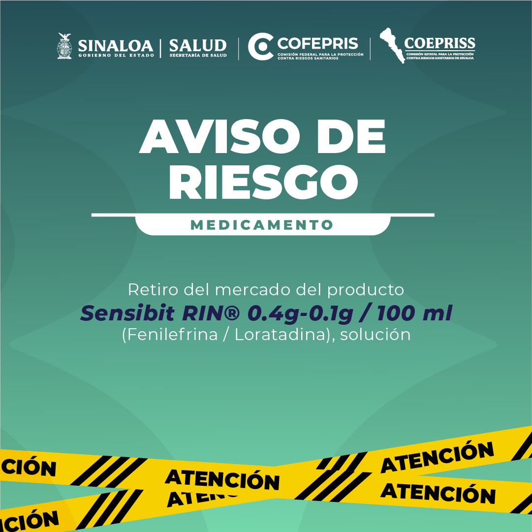 AVISO DE RIESGO MEDICAMENTO Retiro del mercado del producto Sensibit RIN® 0.4g-0.1g / 100 ml(Fenilefrina / Loratadina), solución