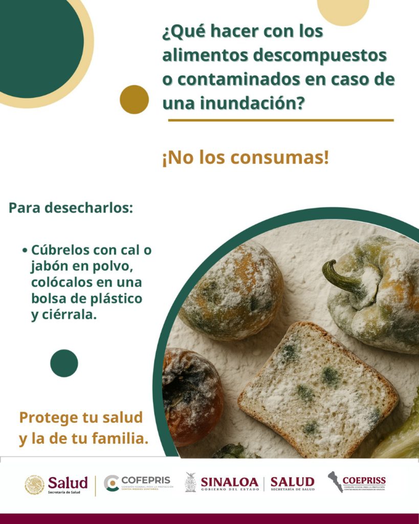 “Después de un desastre natural, #COFEPRIS te recuerda no consumir alimentos que hayan estado expuestos al agua contaminada por la