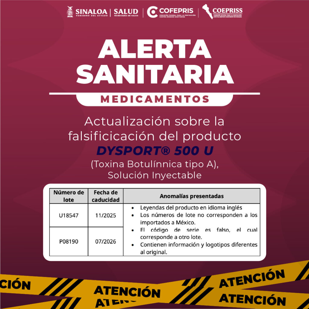 Actualización sobre la falsificicación del producto DYSPORT® 500 U (Toxina Botulínnica tipo A), Solución Inyectable