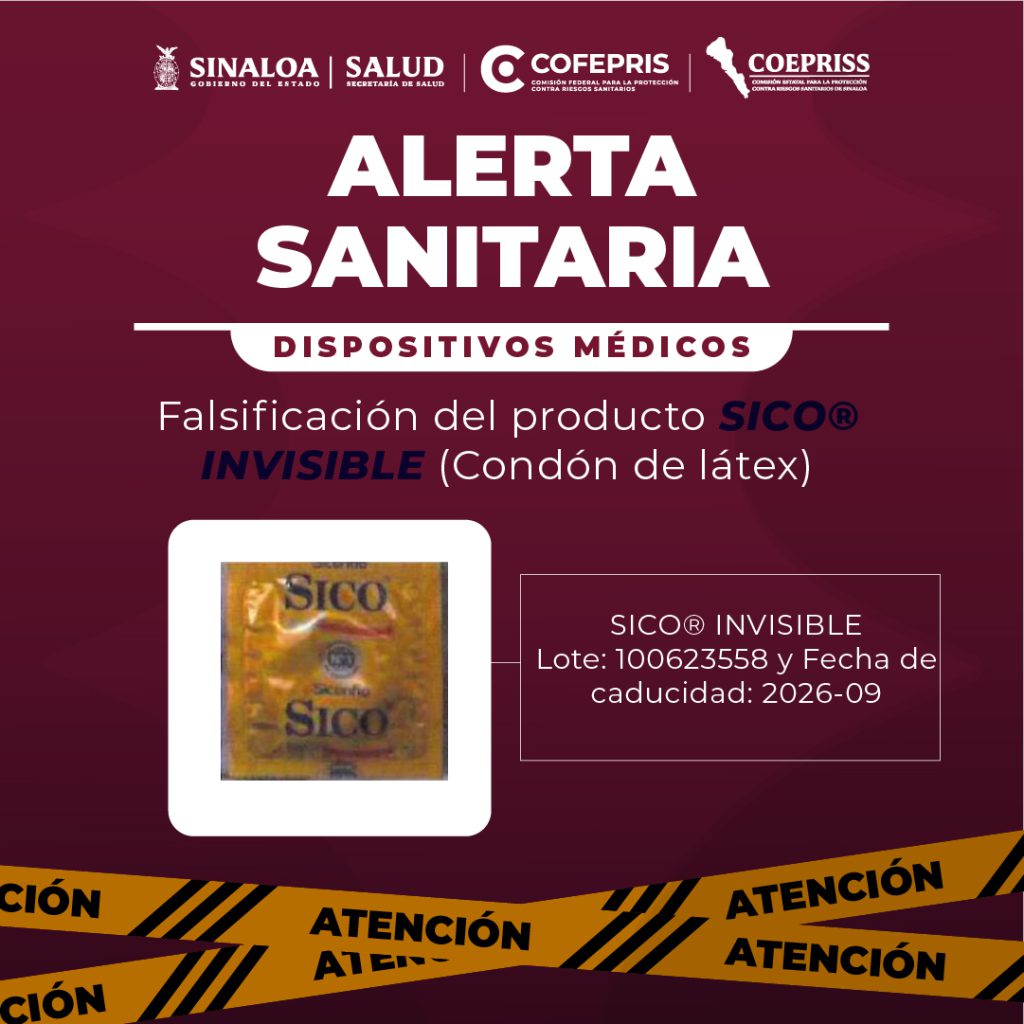 Alerta Sanitaria – Producto Falsificado La COFEPRIS informa sobre la comercialización ilegal de SICO® INVISIBLE (Condón de látex) en presentación