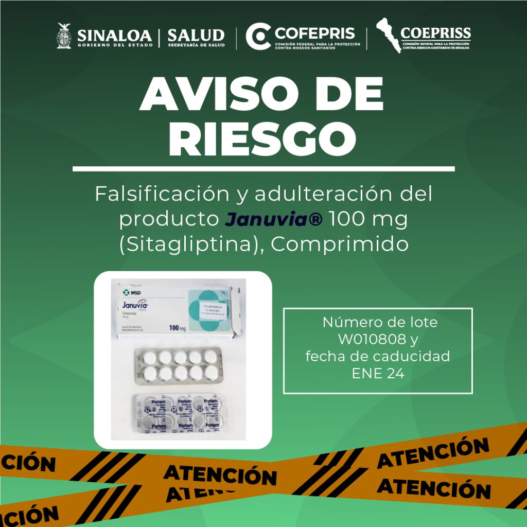 La COFEPRIS informa sobre la falsificación y adulteración del medicamento Januvia® (Sitagliptina) 100 mg, caja con 28 comprimidos. Este aviso […]