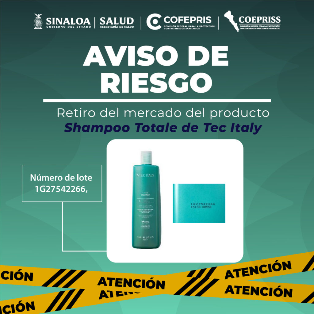 AVISO DE RIESGO Retiro del mercado del producto Shampoo Totale de Tec Italy