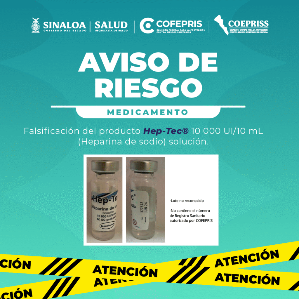 AVISO DE RIESGO MEDICAMENTO COEPRISS COMISIÓN ESTATAL PARA LA PROTECCIÓN CONTRA INES COS SANTLAILOS DE SINALOA Comercialización ilegal de productos