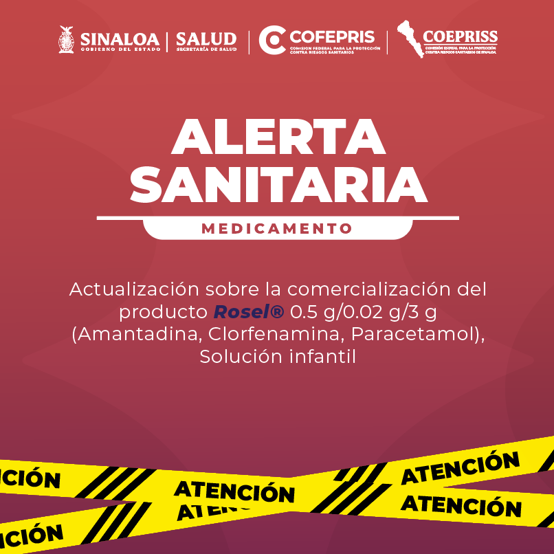 ALERTA SANITARIA MEDICAMENTO Actualización sobre la comercialización del producto Rosel® 0.5 g/0.02 g/3 g(Amantadina, Clorfenamina, Paracetamol), Solución infantil