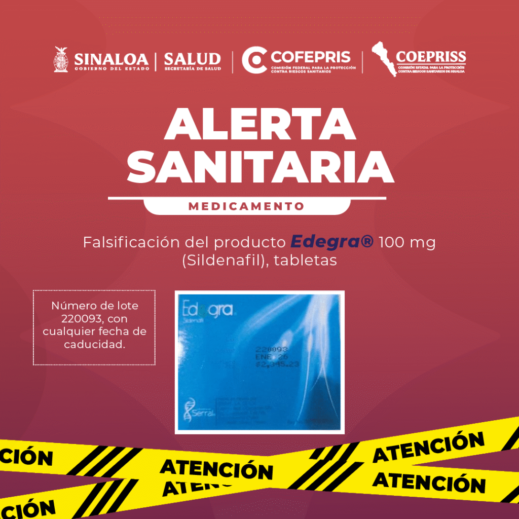 ALERTA SANITARIA MEDICAMENTO Falsificación del producto Edegra®100 mg (Sildenafil), tabletas