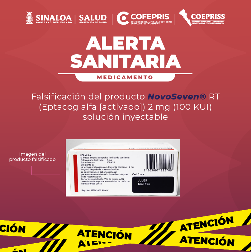 ALERTA SANITARIA MEDICAMENTO Falsificación del producto NovoSeven® RT (Eptacog alfa [activado]) 2 mg (100 KUI) solución inyectable