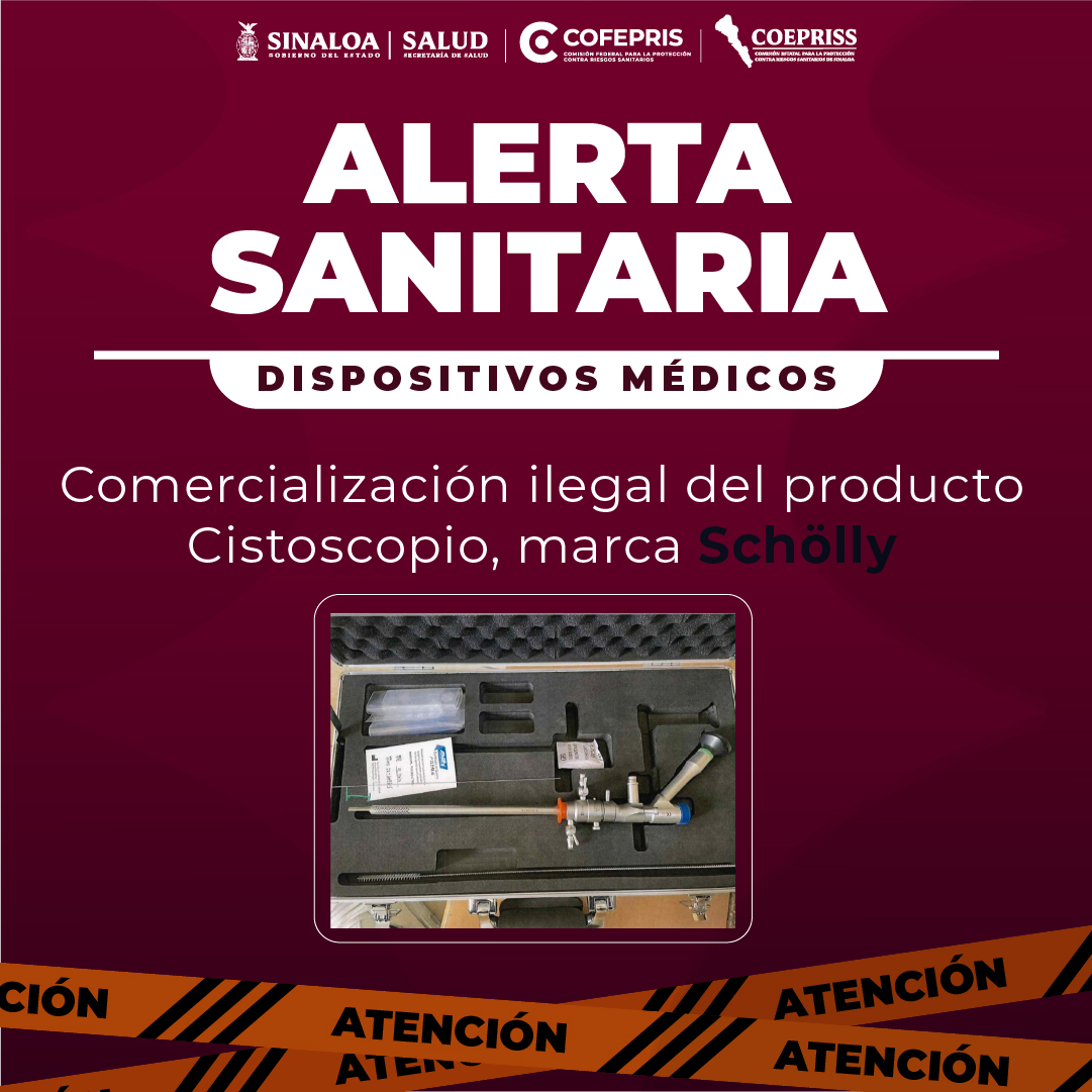 La presente alerta sanitaria se emite tras el análisis técnico-documental de la información presentada a través de Solución Integral a sus Necesidades Regulatorias, S.A. de C.V., representante legal de la empresa Schölly Fiberoptic GmbH, quien identificó la comercialización ilegal en territorio nacional, a través de plataformas de comercio electrónico, sitios web y aplicaciones de dispositivos móviles, del producto Cistoscopio, marca Schölly, que actualmente no cuenta con registro sanitario emitido por esta Autoridad Sanitaria. Adicionalmente, informan que dicho producto no es reconocido por el fabricante.