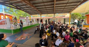 Personal de la Comisión Estatal para la Protección contra Riesgos Sanitarios de Sinaloa (COEPRISS) acudió al Jardín de Niños Josefa Ortiz de Domínguez para impartir una charla sobre saneamiento básico y hábitos saludables dirigida a niñas y niños.