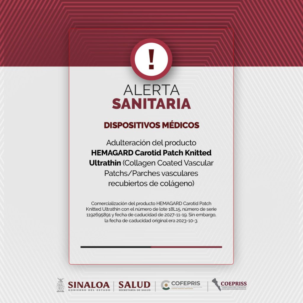 Adulteración del producto HEMAGARD Carotid Patch Knitted Ultrathin (Collagen Coated Vascular Patchs/Parches vasculares recubiertos de colágeno)